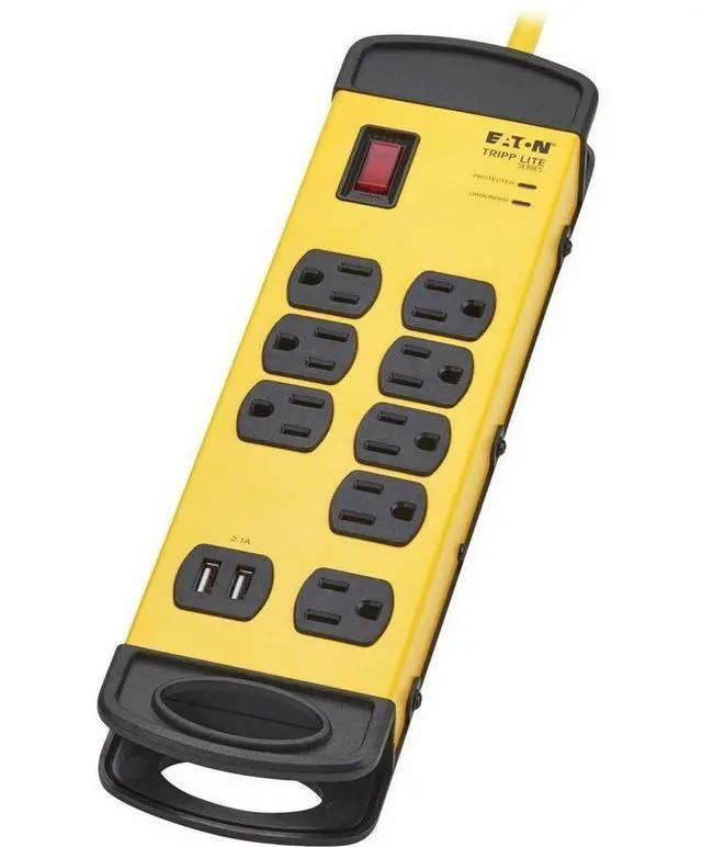Features | Industrial-Grade Surge Protector with USB Charging Safeguards Your Sensitive ElectronicsIdeal for your factory floors, basements, garages, warehouses, automotive plants and other industrial facilities, this Protect It! (r) safety surge protector features a surge suppression rating of 1960 joules to defend your sensitive components against power surges and spikes. Because residential power outlets have three wires-hot line (H), neutral (N) and ground (G) -the TLM825USB protects all three, covering