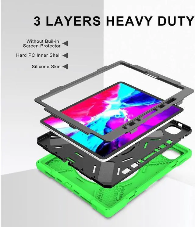 [3-layer Protection/Precise Cutout Design] 1- Made of 3 layer shells(A black front frame,An inner hard cover,An outer soft silicone shell),Protect your iPad Pro 12.9 against accidental drops, bumps and shocks. 2- Allows easy access to all buttons,controls and ports without removing the iPad 12.9 2020 case.(Support 2nd Gen Apple Pencil's magnetic attachment or wireless charging features!)