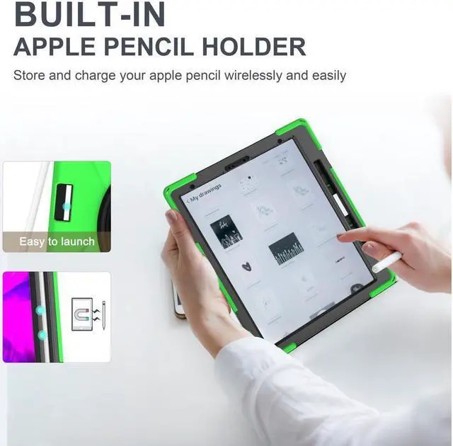 [Adjustable/Detachable Shoulder Strap] Attach strap to any two holes of iPad 12.9 Pro Case 4th Gen,portable carrying strap provides you ultimate convenience for carrying around; You can even mount it to car headrest for back seat hand-free viewing, ideal for working,studying and travelling.