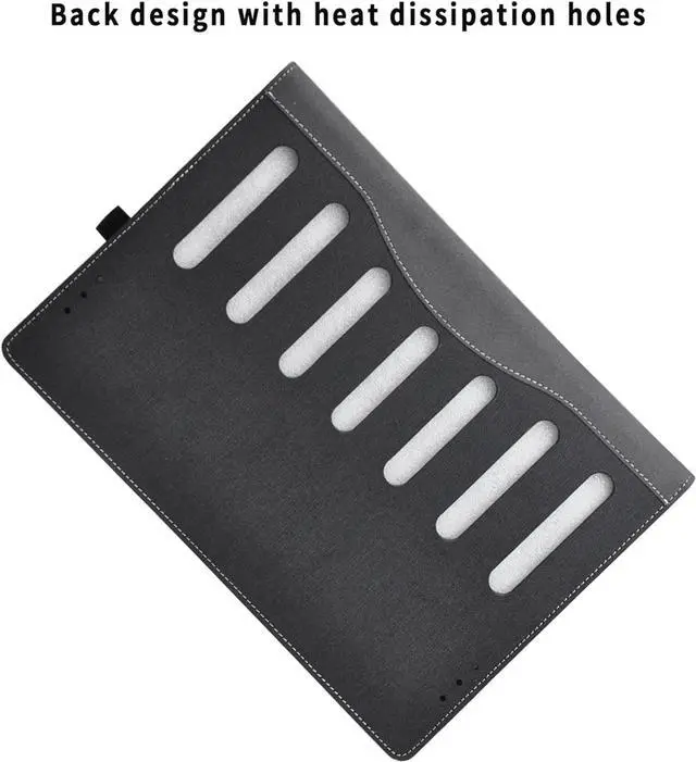 Heat dissipation: The back is designed with cooling holes to facilitate heat transfer and prevent overheating of the laptop. The side is designed with elastic bandages for storing the stylus. This product is only a protective cover and does not include the laptop and pen shown.