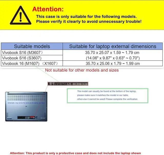 Fit models: Only for ASUS Vivobook 16 (M1607 /X1607) and Vivobook S16 (M3607 / S3607), not suitable for other models,please check your laptop model number or it will not work!