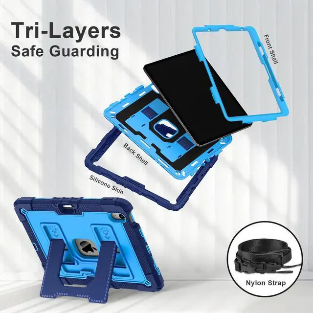 Mil-Grade Drop Protection --- The case is made from shockproof hard PC & soft silicone (so nice to touch),upgrad grade thickened corners & shock-proof design keeps your ipad case better protected to avoid daily bumps,scrapes,defeat 99.99% accidental drops,unbreakable!