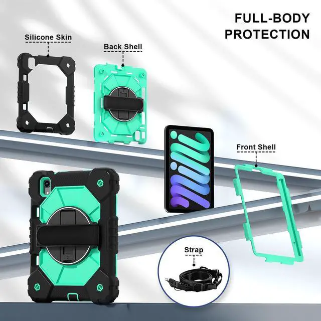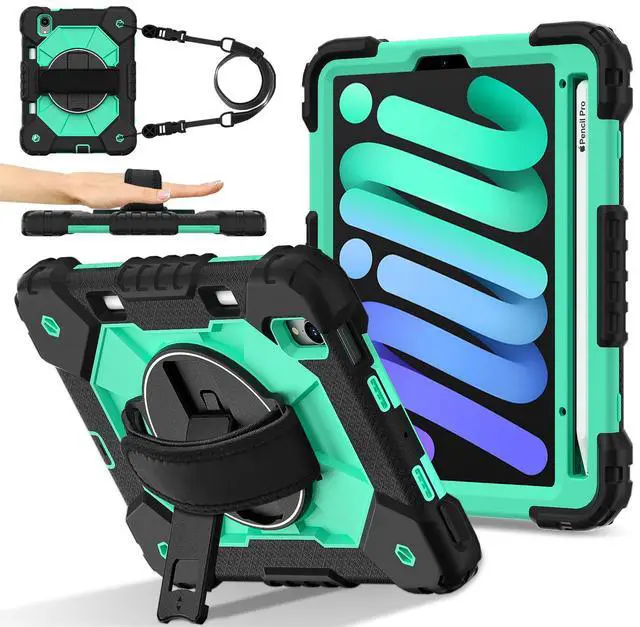 WERLEO Case for iPad Mini 7 A17 Pro 2024 / iPad Mini 6 2021 8.3 Inch with Rotating Stand Pencil Holder Hand/Shoulder Strap, Heavy Duty Shockproof Protective Cover for iPad Mini 7th/6th Generation 8.3"