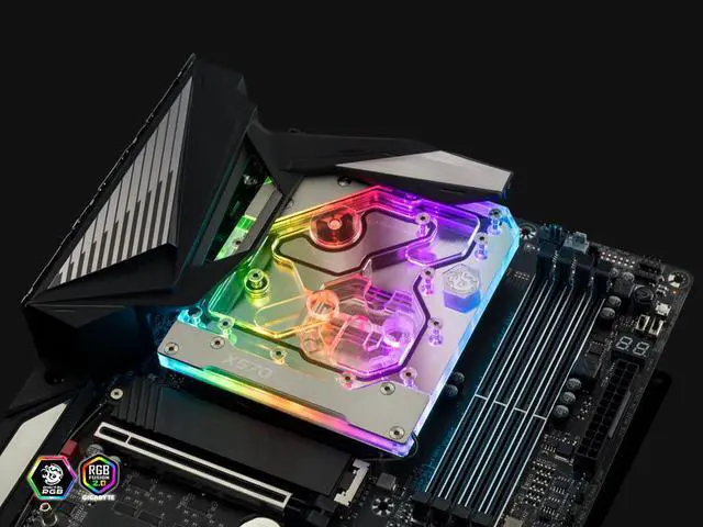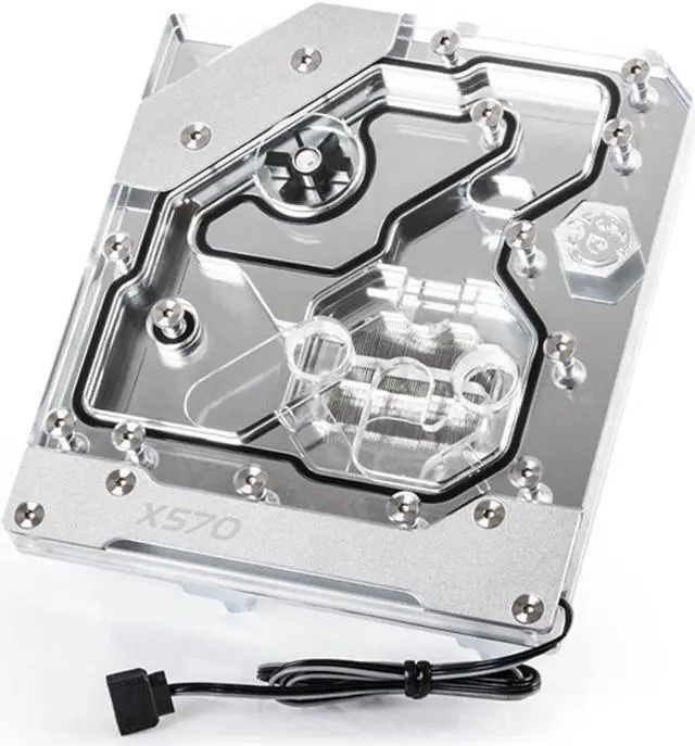 Made of clear acrylic, the top layer of the mono block offers not only an efficient water channel design, but also a unique look to complement your PC style, while the base layer is made of high quality copper and molded to tightly fit over the CPU and VRMs, offering the best heat transfer possible. Additionally, the Bitspower AMD X570 series mono block is equipped with Bitspower Digital RGB LEDs, the X570 series mono block is sure to become the center piece of your rig with its easy to control light effects.