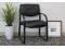 Fully upholstered in Black Leatherplus. Polished tubular steel frame coated with Black scratch resistant finish. Thick contoured cushions for added comfort support. Moves smoothly over hard surface ad plush carpeting. Curved arms easily clear front edges when pulled close to table. Contoured seat and back provides firm lumbar support.