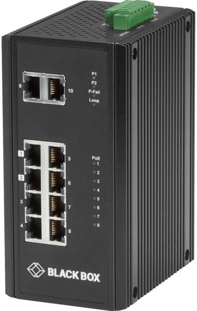 Unlike the Ethernet switches in your wiring closet or computer center, the switches at the edges of your network have to withstand extreme temperatures and conditions. This is where the Industrial Unmanaged Gigabit Ethernet PoE+ Switch from Black Box comes in. This extreme industrial switch features eight autosensing 10-/100-/1000-Mbps PoE/PoE+ 802 af/at copper ports and two Gigabit copper ports. Use this rugged switch in harsh environments with temperature extremes of -40° to +75°C, such as loading docks, remote monitoring stations and industrial facilities.