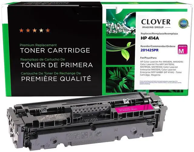 • Clover remanufactured printer cartridges are designed to meet or exceed HP brand print quality, page yield, and reliability. Compatible with: HP Color LaserJet Pro M454DN, M454DW; Color LaserJet Pro MFP M479DW, M479FDN, M479FDW; Color LaserJet Enterprise M455DN; Color LaserJet Enterprise MFP M480F. Packaging may vary. Safety Data Sheet.