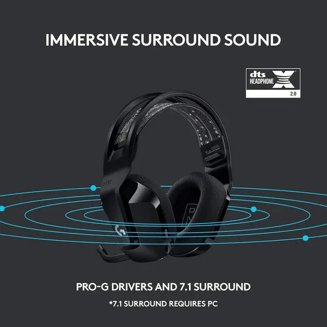 Meet G733, a gaming headset designed to suit your style. Embrace total wireless with 2.4 GHZ LIGHTSPEED wireless, featuring up to 20 m of range and up to 29 hours of battery life. Customize how you look and sound in G HUB with dual-zone, front-facing LIGHTSYNC RGB and Blue VO!CE real-time voice filters. G733 features advanced audio technologies, including 40 mm PRO-G audio drivers, internal acoustic chambers, and DTS Headphone:X 2.0. Play your way with four colorways to choose from and play with comfort with a comfortable, reversible headband, dual-layer memory foam earcups, and a lightweight headset that weighs just 278 g.