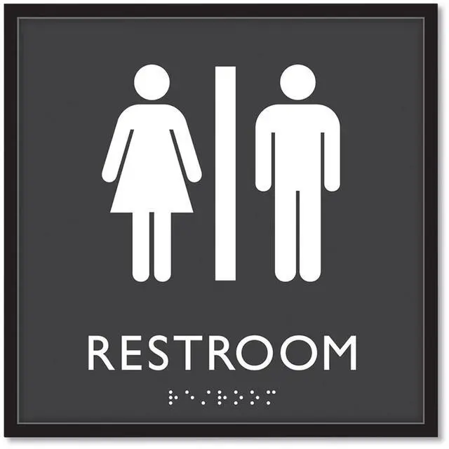 ADA Sign Unisex Restroom Plastic 8 x 8 Clear/White 66910