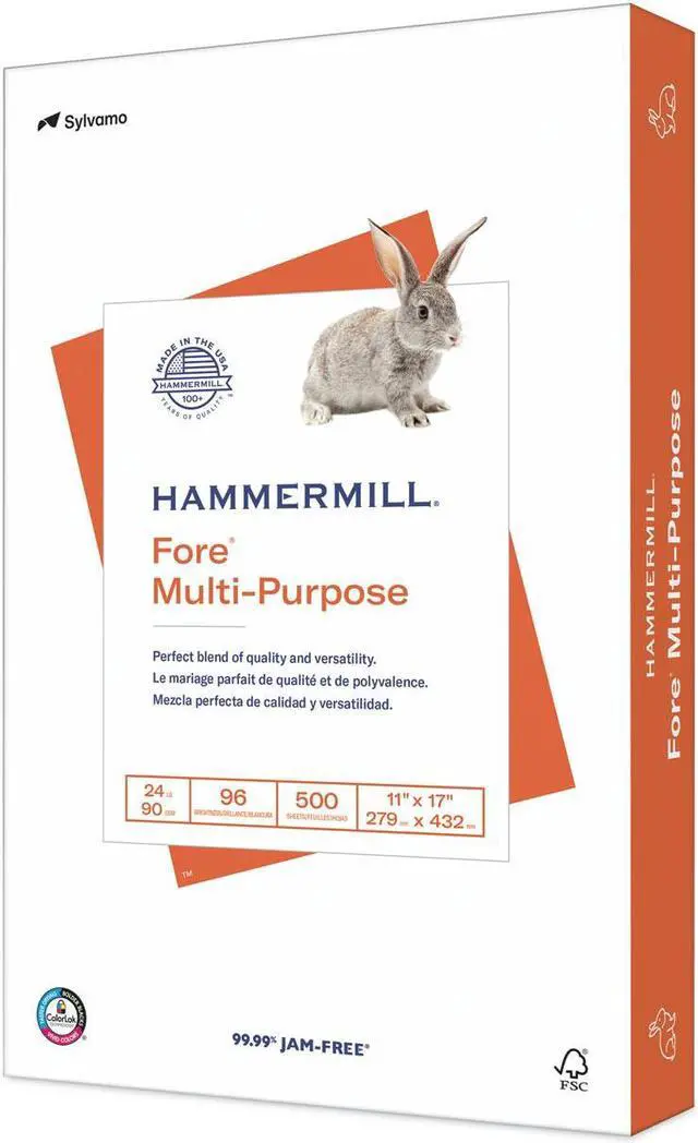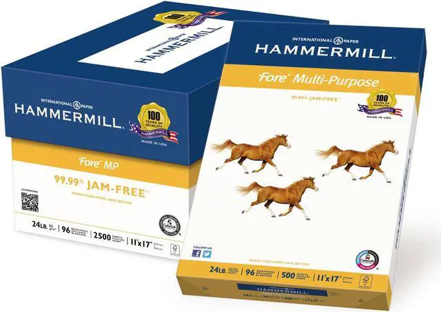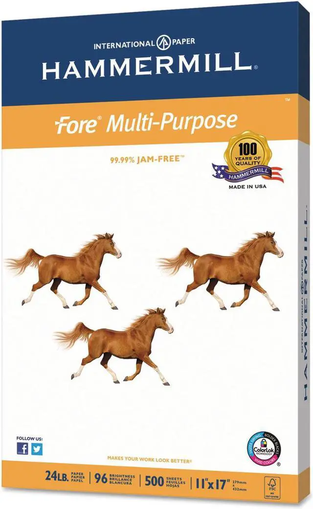 Fore multipurpose printer paper is a high-quality paper guaranteed to run on all digital imaging equipment. It has good opacity to minimize show-through. Ideal for copies, newsletters, flyers, forms, reports, price listings, manuals and more. ColorLok technology for bolder blacks, brighter colors and faster drying. Backed by the 99.99% Jam-Free Guarantee. Acid-free material prevents yellowing over time to ensure a long-lasting appearance. This product was made from wood sourced from a certified managed forest. Sheets Per Unit: 500; Machine Compatibility: Copiers; Fax Machines; Inkjet Printers; Laser Printers; Typewriters; Brightness Rating (US): 96; Brightness Rating (International): 112.