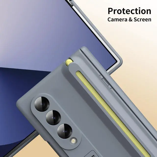 Invisible Kickstand,Hands Release --- Stand for samsung fold 3 case at the back made with lightweight yet robust material, hidden stand is ready to hidden behind, galaxy z fold 3 s pen case not add extra bulk, Precise laser cutting allows access to all buttons easily. Raised edges for camera & screen against bumps and accidental drops,fingerprints.