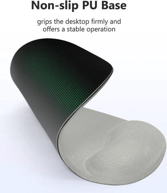 • Grips Desktop FirmlyThe durable, Non-Slip PU Base is designed to eliminate unwanted movement and provide a solid platform for intense gaming.It can keep the mouse pad from sliding on the desktop. NO need to worry about the mouse pad slipping away.^^