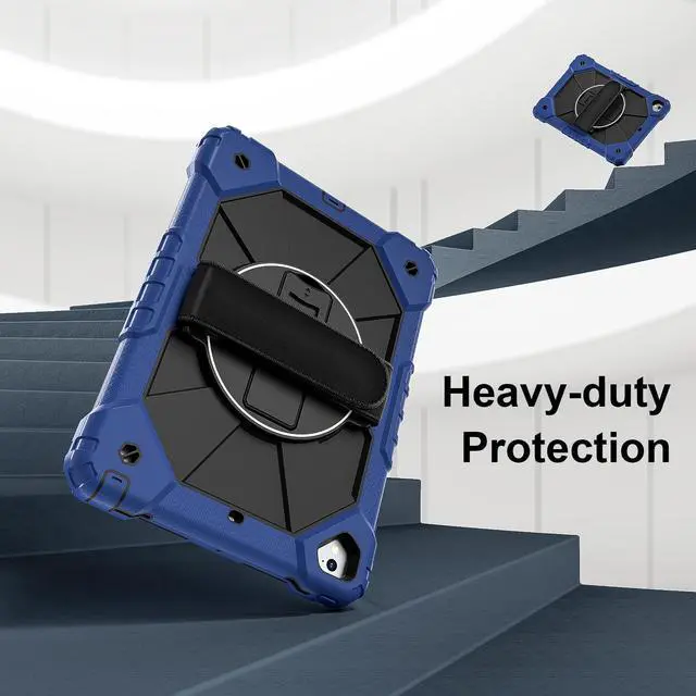 Built-in 360 Rotatable Kickstand + Hand Strap : 360-degree rotating swivel stand supports position of 3 angles(Vertical, Horizontal, and Halfway between), ideal for watching videos, conferences and travelling. Soft rotating handle strap prevents falling of tablet, featuring convenient use for school teachers, students, waiters, doctors, nurses and conference presenters.