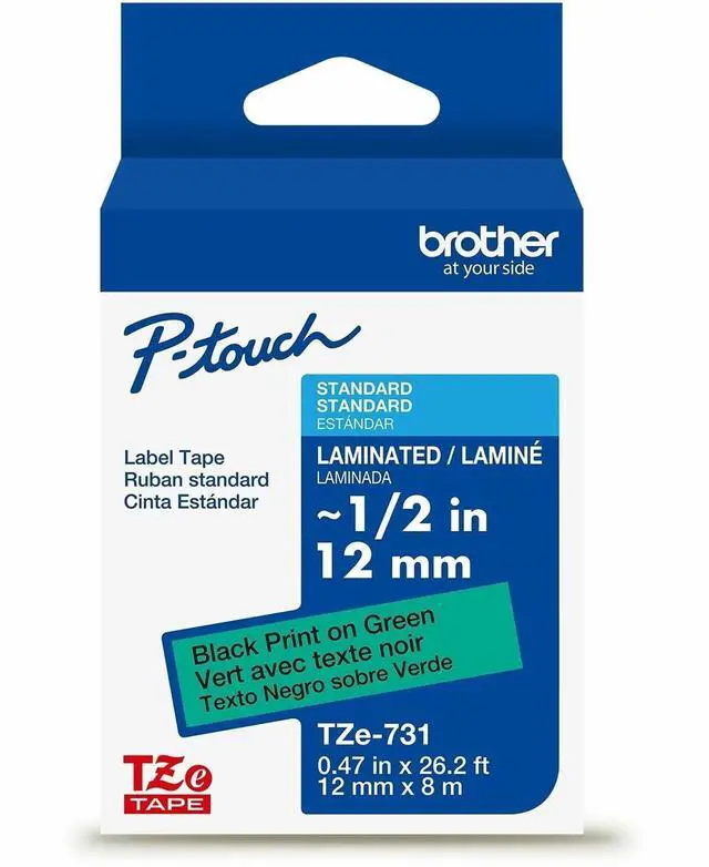Brother Genuine P-touch TZe731 BK on GRN Label Tape Laminated 12mmX8m TZE731G