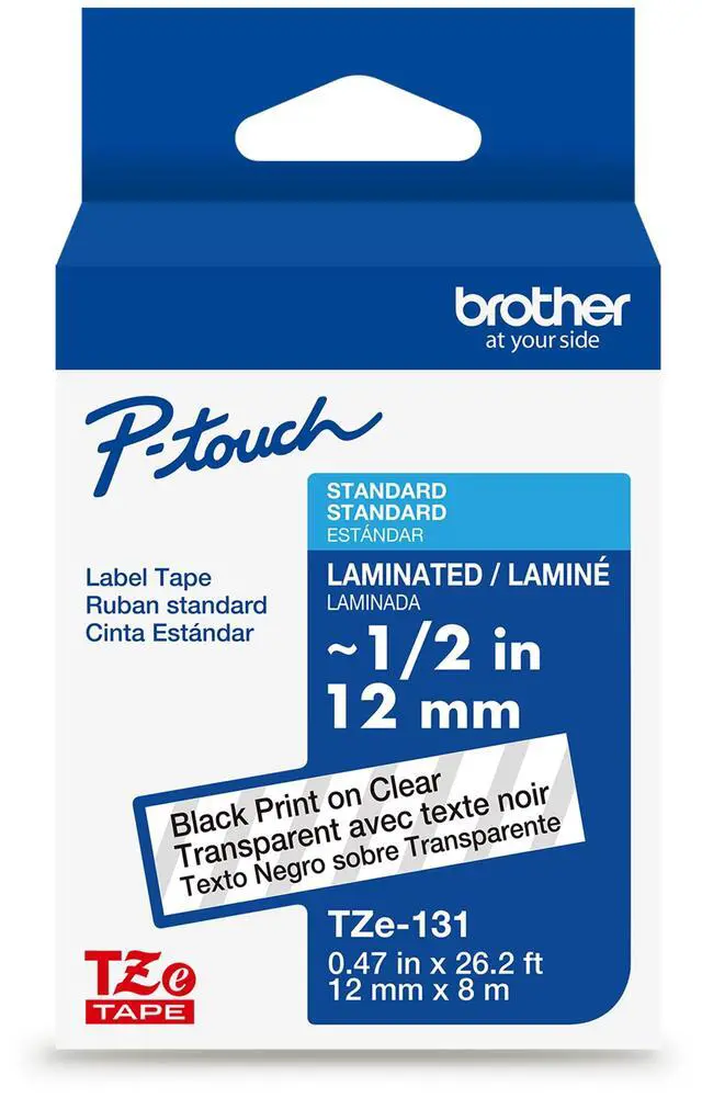 Brother Genuine P-touch TZe131 BK on CLR Label Tape Laminated 12mmX8m