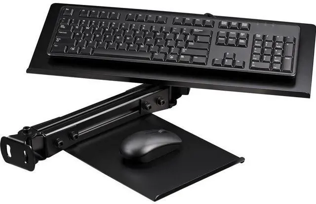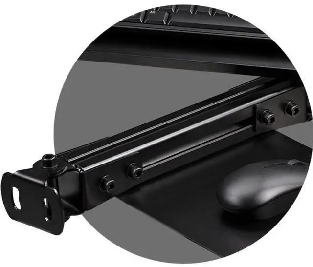 The Next Level Racing Elite Keyboard and Mouse Tray feature the full spectrum of adjustability, with 60 degrees of tilt on the mounting arm (30 degrees front and 30 degrees back), and 150 degrees for the keyboard plate. With the black anodized aluminum finish, users are able to complete the look of their Elite Series cockpit in a full black finish.