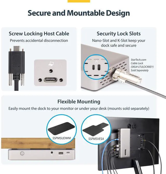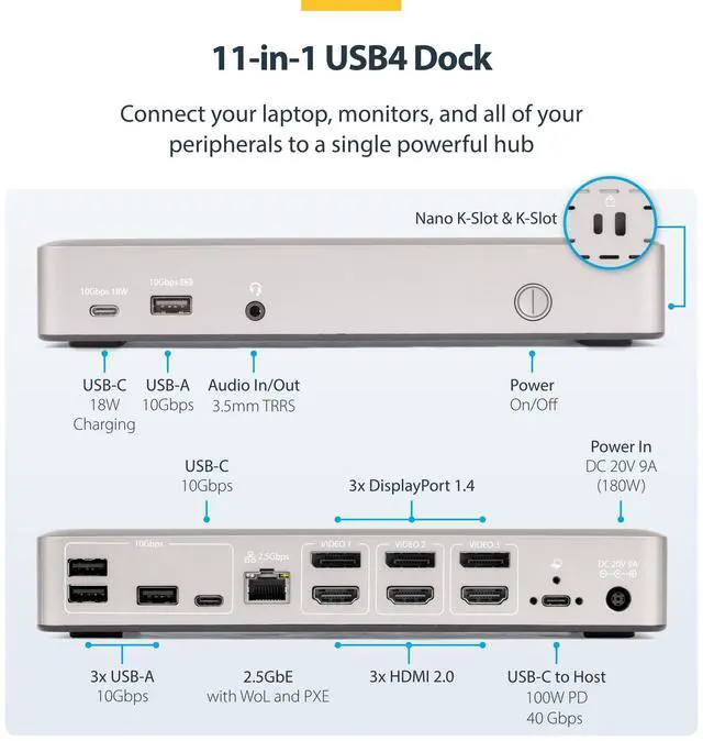 StarTech Triple-Monitor USB4 Docking Station 4K 60Hz HDMI or DisplayPort 6x USB Hub 2.5GbE 100W Charging Driverless USB-C Dock