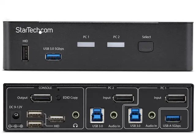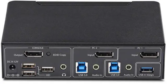 Console Interface(s) 4 - USB 2.0 Type-A (4 pin, 480Mbps); 2 - USB 3.2 Type-A (9 pin, Gen 1, 5Gbps); 1 - 3.5mm Stereo Female 3 pos; 1 - DisplayPort; 1 - Barrel Power Connector (Size M, OD:5.50, ID: 2.10). Host Connectors 2 - DisplayPort; 2 - USB 3.2 Type-B (9 pin, Gen 1, 5Gbps); 2 - 3.5mm Stereo Female 3 pos.