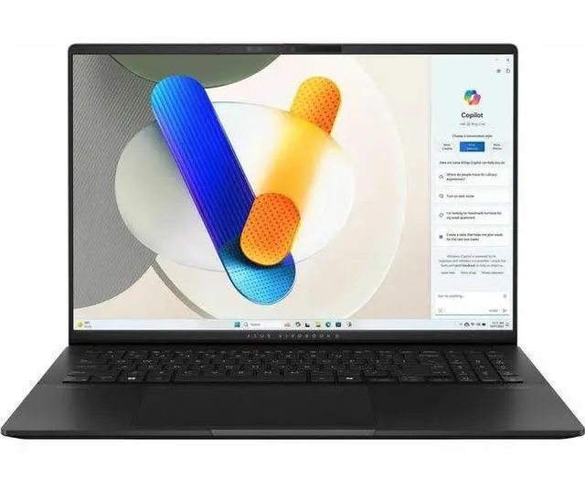 ASUS Vivobook S16 - Super AI, Stunning StyleThe ASUS Vivobook S16 transforms your laptop experience with cutting-edge technology and a sleek minimalist design. Powered by up to AMD Ryzen AI 7 350 processor, it delivers top-notch performance with up to 50 TOPS NPU, enhancing your productivity to the next level and unlocking brand new AI experiences. The dedicated Copilot key provides instant one-touch access to AI capabilities. With a slim 1.39 cm profile, weighing 1.5 kg, and up to 28 hours of battery life, it's designed for on-the-go convenience. The laptop boasts a stunning up to 2.8K ASUS Lumina OLED display, an ergonomic keyboard with RGB backlighting, an extra-large touchpad, and an ASUS AI camera.