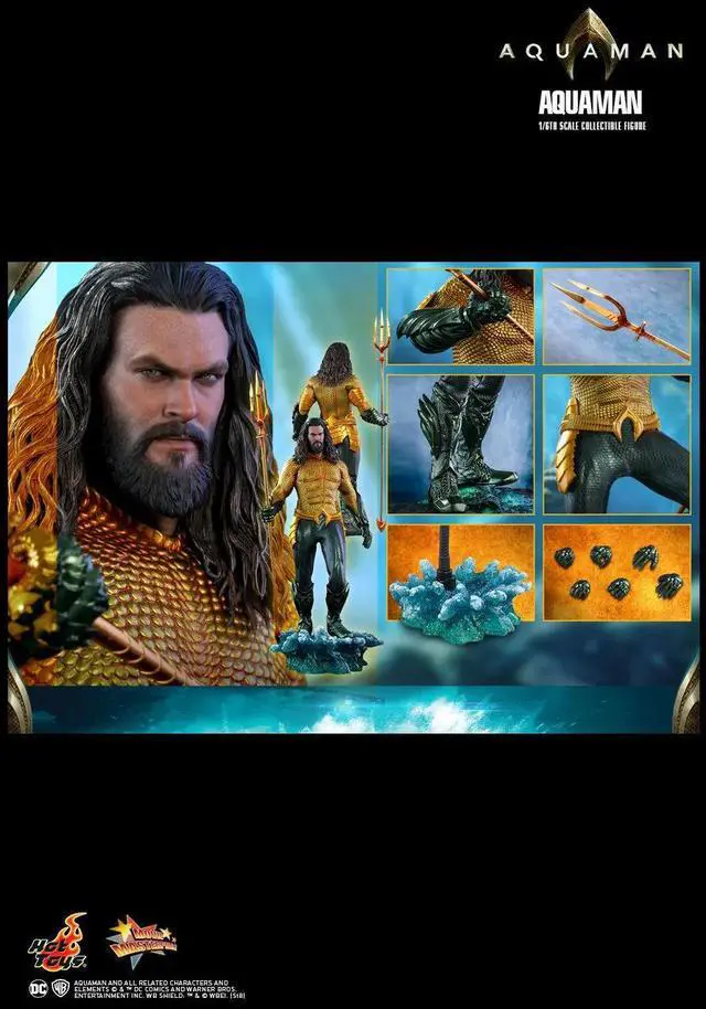 Arthur Curry, a half-Human and half-Atlantean, learns that he is the heir to the kingdom of Atlantis. With his superhuman strength, he must now step up to lead his people and stop an all-out war between the seas and the surface world. Sideshow and Hot Toys are thrilled to introduce the Aquaman Sixth Scale Collectible Figure in his iconic outfit! The movie-accurate collectible figure is meticulously crafted based on the appearance of Jason Momoa as Arthur Curry/Aquaman in the movie of the same title, including a newly painted head sculpt with a detailed long hair sculpture, a specialized body portraying Aquaman? s muscular body with enhanced articulations, a classic Aquaman costume with the signature gold and green color scheme, a highly-detailed Trident, and a specially designed dynamic figure stand featuring an ocean themed diorama! Atlantis is rising.