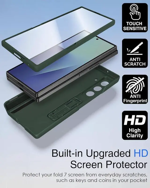 [Built-in Screen Protector] This Z Fold 7 case includes a tempered glass screen protector to guard against scratches and impacts while keeping touch sensitivity intact. Grooves around the edges ensure smooth swiping for quick returns and easy access to the home screen.