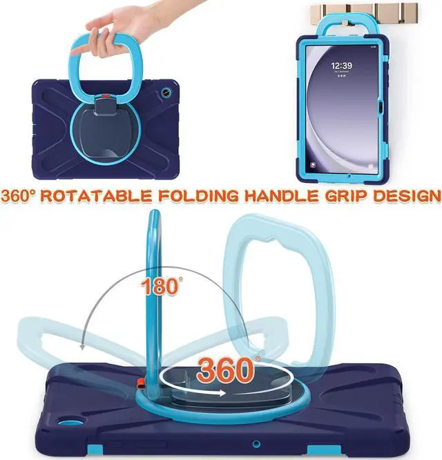 • 360 Degree Rotatable Kickstand & Hand Strap: 360 degree rotatable kickstand offers multiple angles for viewing, typing and reading. Ergonomic and adjustable back handle allows you to grip your tablet securely and steadily with one hand, worry-free from dropping it
