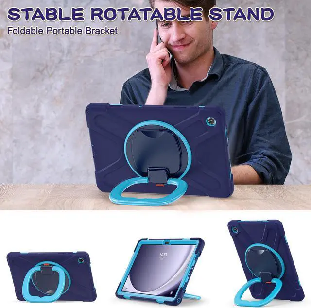 BONAEVER Case for Samsung Galaxy Tab A9 Plus 11 inch 2023 Model SM-X210/X216/X218 with 360° Rotating Stand and Strap & Shoulder Strap Shockproof Cover for Galaxy Tab A9 Plus 11" Navy Blue