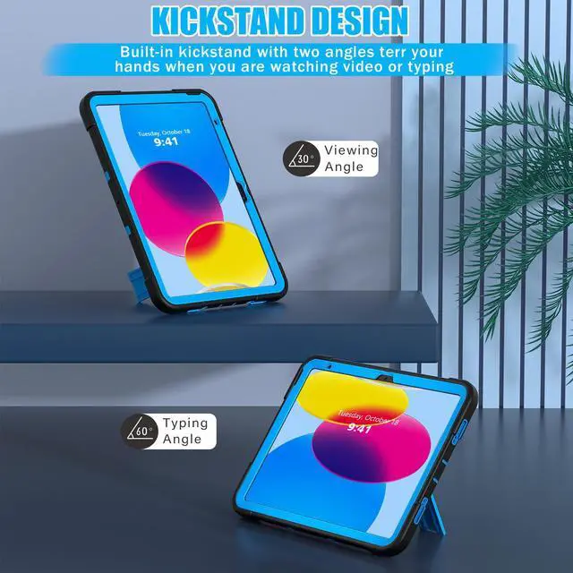 iPad Case with Built-in Kickstand --- The iPad case with built-in sturdy kickstand, offers you 2 angles like viewing and typing when you are playing or working. Free your hands and enjoy your watching or facetime with the iPad case.