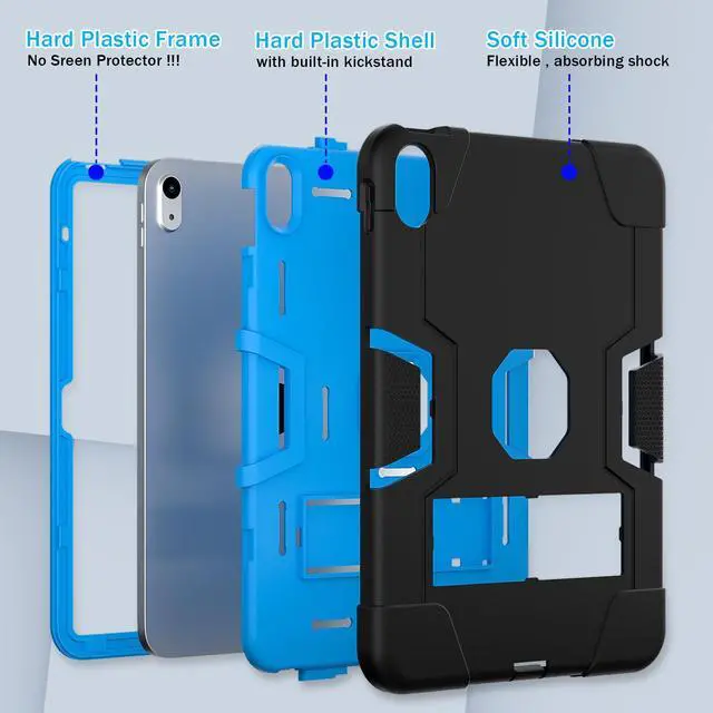 Full Body Protection & Premium Materials --- This iPad case is made of hard plastic frame + PC inner shell + durable soft Silicone (NO screen protector), the safe materials are also friendly to kids. 3-layer full body protection structure, which provides perfect protection for your iPad against drop, scratch, shock and dust.