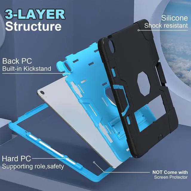 Full Body Protection & Premium Materials --- This iPad case is made of hard plastic frame + PC inner shell + durable soft Silicone (NO screen protector), the safe materials are also friendly to kids. 3-layer full body protection structure, which provides perfect protection for your iPad against drop, scratch, shock and dust.