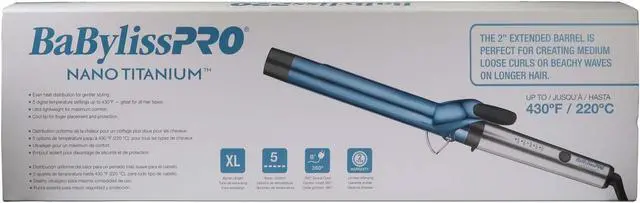 From the Nano Titanium Collection. Curl long hair faster with this extended-barrel curling iron. The Blue Nano Titanium barrel evenly distributes high heat up to 430°F to create long-lasting curls with radiant shine. The slim design is lightweight and easy to handle for maximum comfort.