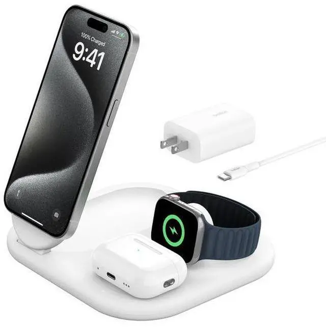 Belkin 3-in-1 Magnetic Foldable Wireless Charger with Qi2 15W Model WIZ029TTWH