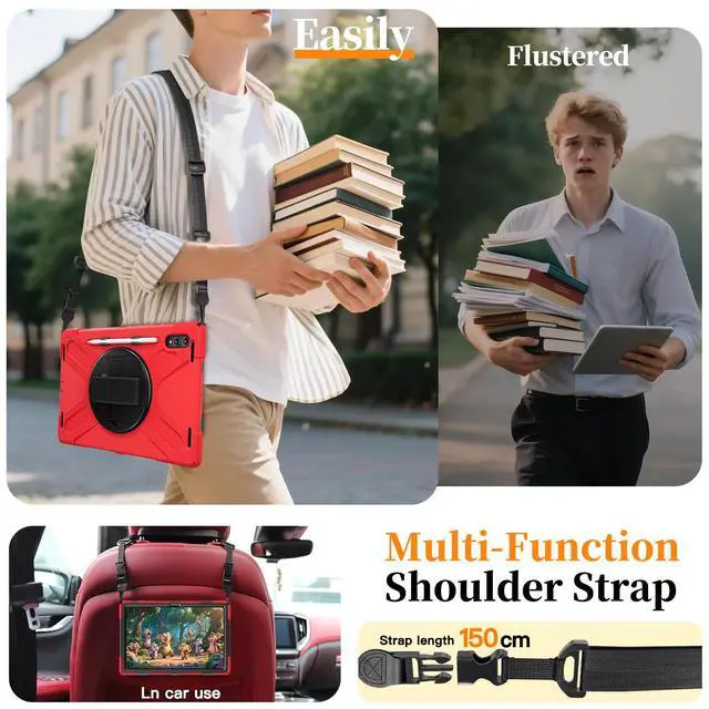 Adjustable Shoulder Strap: The Heavy Duty Samsung Galaxy Tab S11 Ultra 14.6" Tablet Case comes with a adjustable detachable shoulder strap, so that you can carry your tablet on neck or shoulder like a bag, or sling it on car head rest. It's ideal for carrying on travel, at work, in school or outdoors