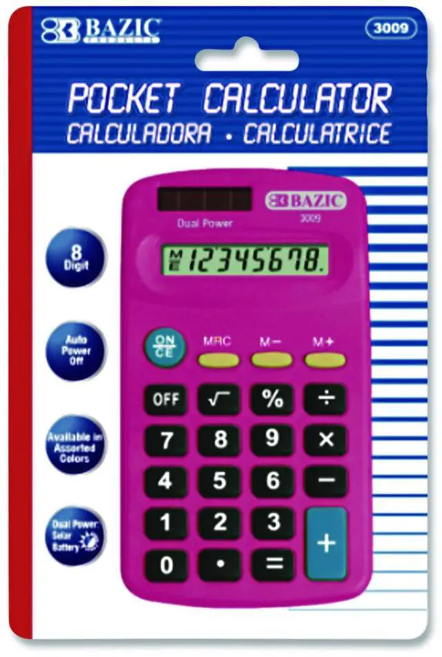Bazic 8-Digit Dual Power Pocket Size Calculator (BAZ3009)