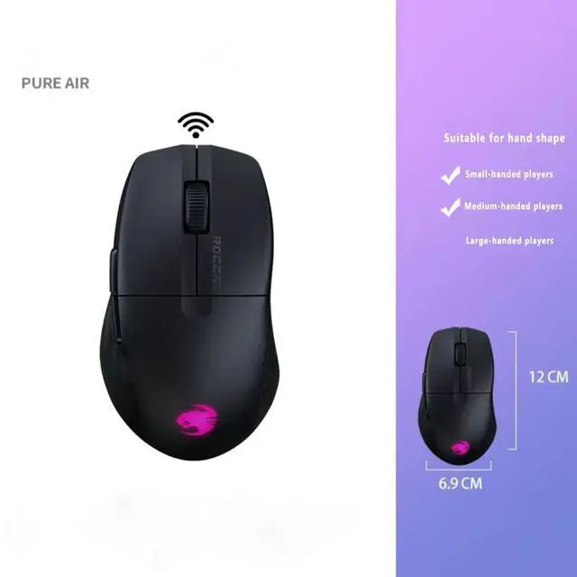 The ROCCAT Pure Air Wireless Gaming Mouse leverages over a decade of ergonomic engineering into a 54g ultra lightweight design. Proprietary TITAN Optical switches are paired with a patented tensioning system delivering the most accurate and satisfying click ever while the 26K DPI Owl-Eye optical sensor provides precise tracking up to 650 IPS (16.5m/s) speed. Engage the dual wireless system allowing you to seamlessly switch between gaming grade 2.4GHz wireless or Bluetooth® with up to 125 hours of battery life. The PhantomFlex cable provides rapid charging with 10 minutes of charge providing 5 hours of game time.