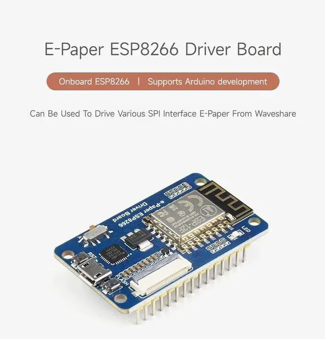 • Comes with e-Paper driver (open source). Comes with development resources and manual. Easy to be integrated into wireless applications