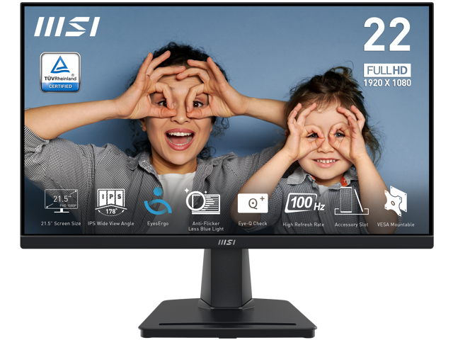 MSI PRO MP225, 22-inch IPS 1920 x 1080 (FHD) Computer Monitor, 100Hz, Adaptive-Sync, HDMI, Video Port, VESA Mountable, Tilt, 1ms, Black