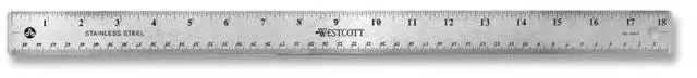 Westcott 18" Stainless steel ruler has drilled hook hole that provides an easy storage option. Ruler features etched, bright white standard and metric measurement markings for convenient readability.