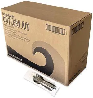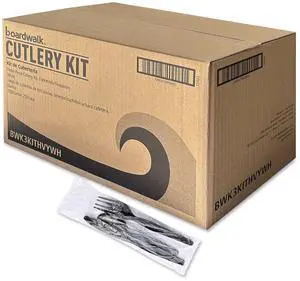 Three-Piece Polystyrene Cutlery Kit Heavyweight Fork/Knife/Spoon Plastic Black 250/Carton BWK3KITHVYBL
