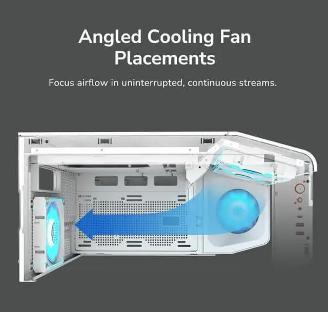 Harmonizing form with function, the FV270 RGB's polyhedral design sets a new standard for airflow dynamics. Placing cooling fans on angled faces ensure uninterrupted, focused streams and the lifted front accesses an additional axis of ventilation, allowing air intake from below. Built-in M/B side 140mm ARGB PWM Fan x2, Bottom 120mm ARGB PWM Fan x 1 & Rear 140mm ARGB PWM Fan x1