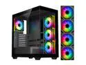 Cons: 1 of my 4 ARGB fans has malfunctioning LED(s) that make it look weird. The built-in hub has 4 slots only; the 4 fans included fill those slots. So don't expect to add anymore of the same on the same controller hub, you'll either have desynced addition ARGB fans, or you'll need to get black/non-ARGB ones to hide in the shadows. Edit: Support sent a replacement free so I didn't have to go through an RMA/return process. Yay!