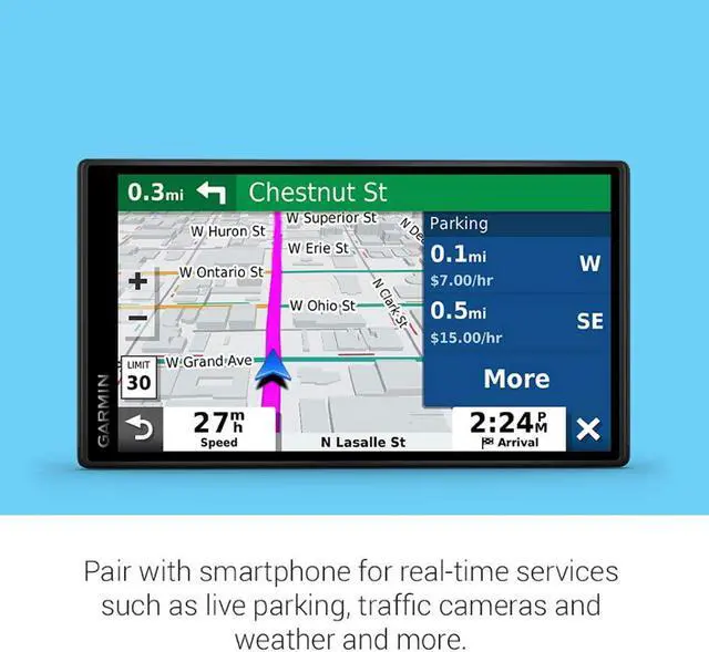 For drivers who love new adventures while traveling, the Garmin Drive Smart 55 GPS navigator is the ultimate road trip companion. Featuring simple menus and easy-to-read maps, Garmin Drive Smart 55 lets you view turn-by-turn directions at a glance on a bright 5. 5 edge-to-edge touchscreen display. Traffic and map updates are included along with helpful driver alerts to encourage safer driving.