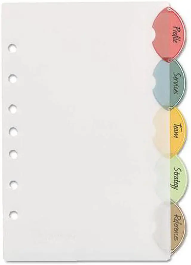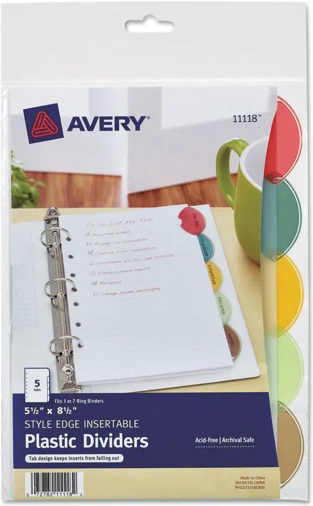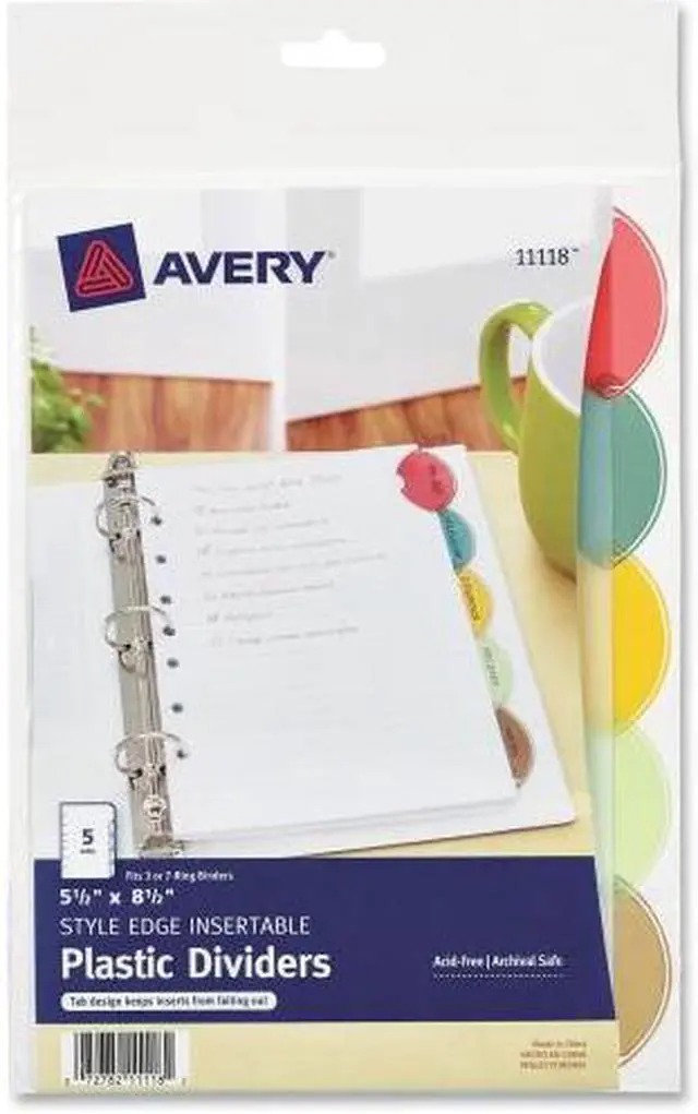 Durable translucent plastic offers style and convenience that lasts. Style Edge Insertable Plastic Dividers feature a distinctive tab design that makes for easy reference and also makes a statement. Customize the included specially designed inserts on your computer with free templates from Avery Design & Print. The unique tab design keeps your inserts from falling out. With these dividers, you're certain to achieve an organizational edge that's both colorful and attractive. For laser and inkjet printers. Mini Size