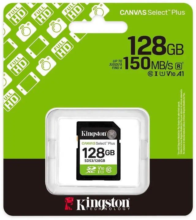 Kingston's Canvas Select Plus SD card delivers reliable performance with speeds up to 150MB/s1, ideal for cameras and full HD video recording. With Class 10 UHS-I speeds, it ensures smooth and consistent performance. Durable and versatile, it's perfect for everyday storage needs. UHS-I speeds up to 150MB/sCapture images and videos in Full HD (1080p) Capacities up to 1TB Durable Lifetime Warranty