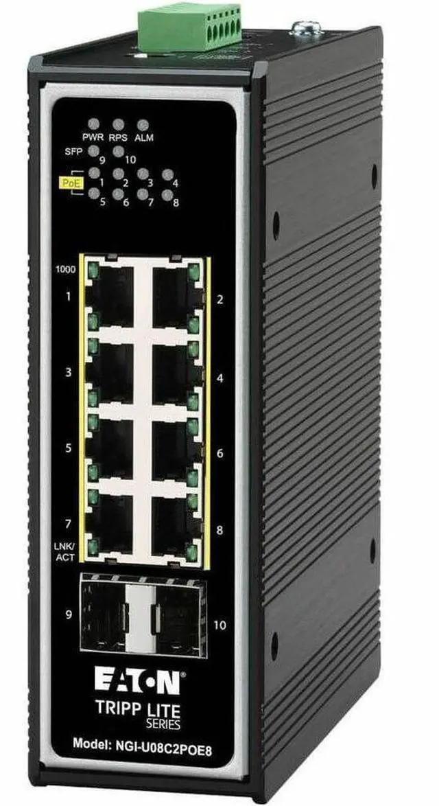 Tripp Lite 8-Port PoE+ 30W Unmanaged Industrial GbE Switch NGI-U08C2POE8