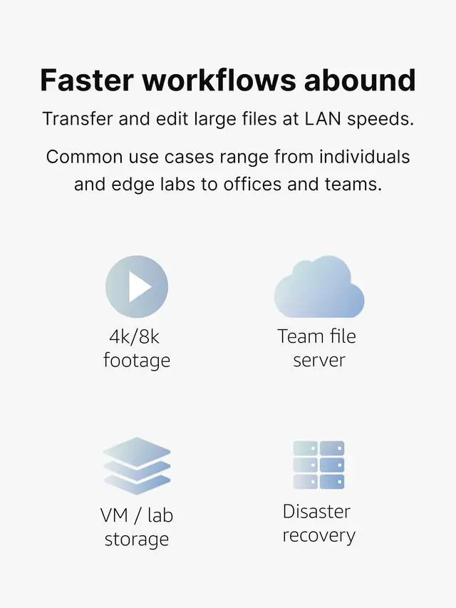 Creative professionals working with 4K and 8K footage face a persistent productivity drain: transferring project files consumes time that could be spent editing, grading or delivering client work. A single 100 GB multi-cam shoot can require about 15 minutes to move from workstation to NAS at gigabit speeds. Multiply that across dailies, edits, exports and backups, and the cumulative delay becomes substantial. Photographers managing RAW libraries encounter similar constraints when syncing hundreds of 50-100MB files after shoots. Collaborative teams working remotely discover that gigabit connections force sequential access patterns, one person transfers footage while others wait. The infrastructure investment in high-performance storage, expanded memory and SSD acceleration delivers diminishing returns when the network cannot transmit data at rates matching storage capabilities. Time spent watching progress bars represents lost revenue and delayed deliverables.