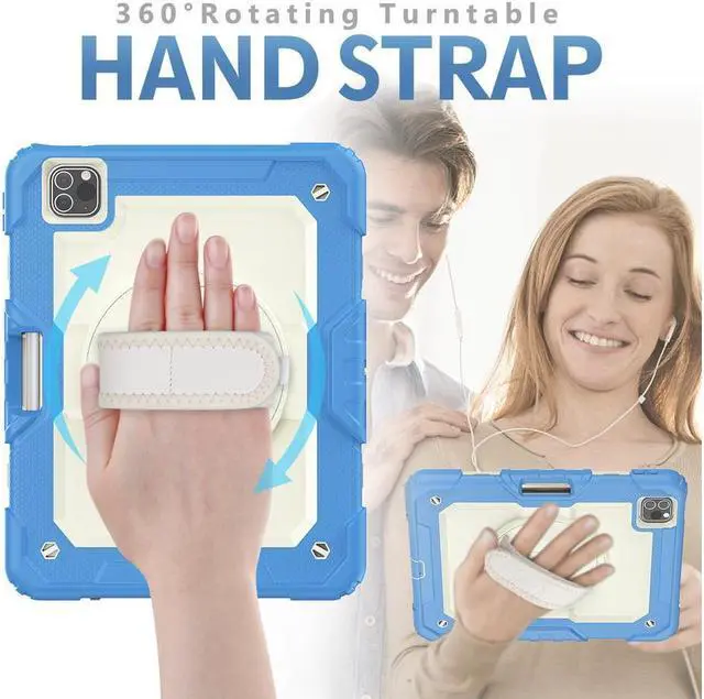 [Hand /Shoulder Strap] The back turntable built-in a hand strap, when you put your hand into the strap, you can firmly grasp the center of gravity of your 11 inch iPad Pro. Additional adjustable shoulder strap up to 49 inches ,it can be attached to the case for carrying your device.