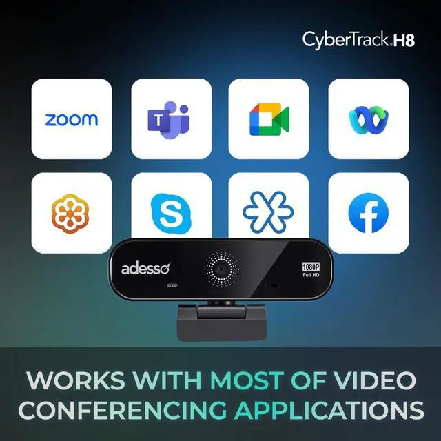 1080P ( 2.0 Megapixel), H. 264, Auto focus Webcam with build in Dual Microphone & Privacy ShutterAdesso's CyberTrack H8 is a 1080P Full HD Resolution Desktop Webcam that allows you to record and share colorful vivid HD quality video with fine detail. This webcam offers you broad Instant Messenger compatibility, so you can enjoy video conferencing with today's most popular Instant Messenger applications. This webcam also includes an integrated wide-angle microphone that lets your voice be heard loud and clear, whether you are chatting with loved ones or doing business on a video call.