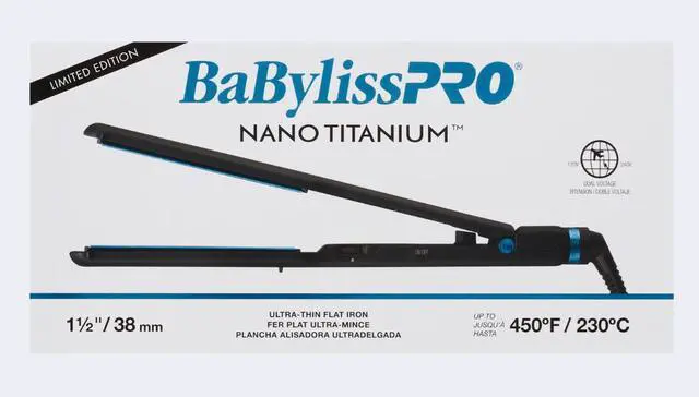 BaByliss Pro Nano Titanium 1½" Flat Irons evenly distribute high heat up to 450°F to create versatile styles with radiant shine. The slim design is ultra lightweight for maximum comfort, with extended plates for faster straightening.