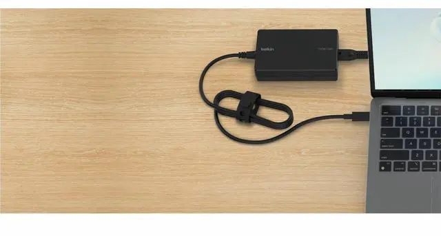 Its universal compatibility with USB-C devices makes it an ideal choice for powering a wide range of electronics, including MacBooks, Windows laptops, Chromebooks, Steam Decks, and Nintendo Switch consoles. Designed with portability at its core, this compact adapter is smaller than standard chargers, making it an excellent travel companion. It features an extended power cord and efficient cable management system, including a 5-foot ( 1.5 -meter) USB-C cable and a 3-foot (1-meter) power cord, offering over 8 feet ( 2.5 meters) of total length for flexible connectivity. The included cable management strap ensures your cables remain organized and tangle-free.